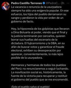 #Urgente | PEDRO CASTILLO SE PRONUNCIA ANTE POSIBLE VACANCIA DE BOLUARTE